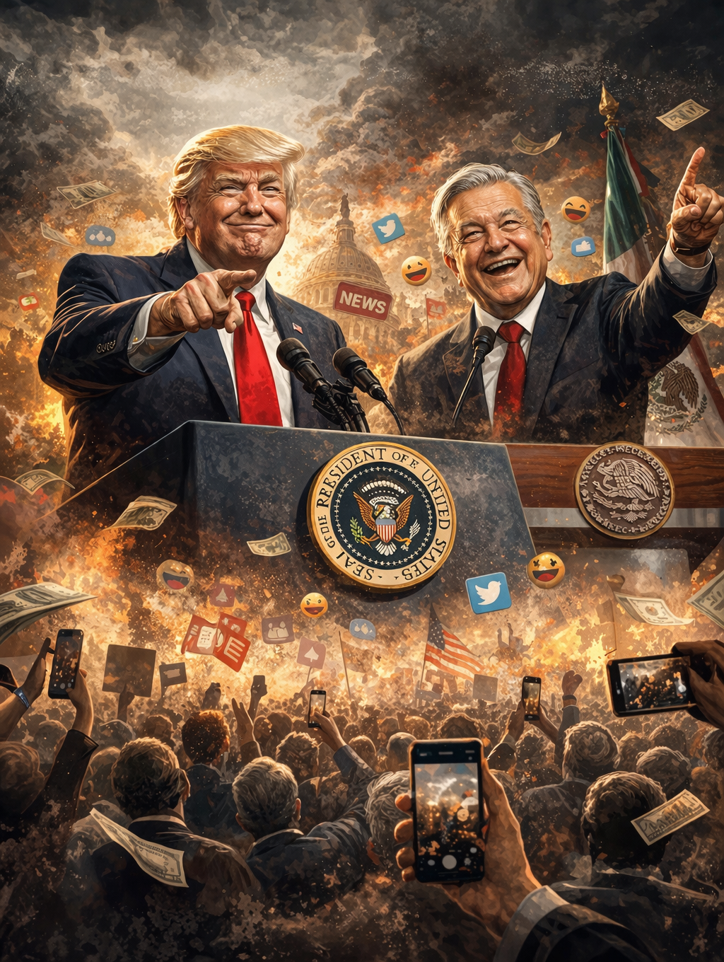 La novedad que campea en la actualidad, y de manera más señalada en casos extremos, consiste en exhibir patrañas con cinismo hasta niveles tan peligrosos que rozan la amenaza mundial. Si bien es cierto que nunca han faltado gobernantes que se valen de la burla y la insolencia para humillar y creerse por encima de los demás, el cinismo se ha popularizado como estilo personal de gobernar a partir del ascenso de dos fantoches elegidos en las urnas en sus respectivos países: Trump y AMLO. Aunque de alcances y rasgos desiguales, ambos sujetos coinciden en ser ridículamente perversos; y, algo peor: haber transgredido con descaro los límites discrecionales que, como reglas no escritas, exigían a cualquier gobernante cierta conducta “políticamente correcta”.